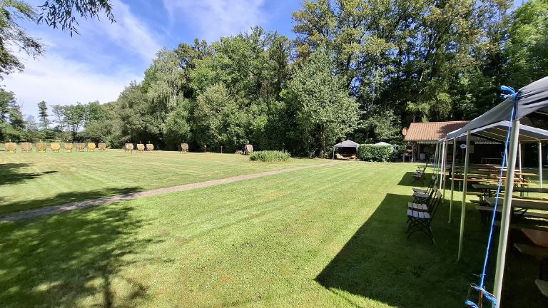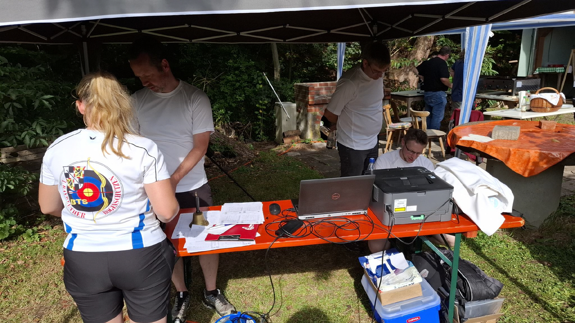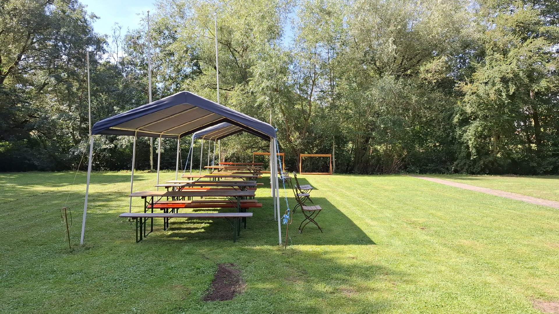 Entgegen des Vortages, an dem wir bei bestem Sommerwetter den Platz herrichten konnten, mussten die Teilnehmer gleich nach der Begrüßung im Regen starten. Der Wetterbericht verhieß nichts Gutes, sogar Starkregen lautete die Prognose. Letzten Endes sind wir aber mit einem blauen Auge davon gekommen, denn pünktlich zur Pause hörte der Regen auf. Alle Gäste konnten ihre Steaks, Bratwürste, Kuchen und einige andere, leckere Sachen im Trockenen genießen. Der zweite Durchgang fand komplett im Trockenen und sogar bei einsetzendem Sonnenschein statt. So endete das Turnier doch mit einem für alle glücklichen Ende. Im großen Kreis fand die Siegerehrung statt, bei der die Besten eine Urkunde mit nach Hause nehmen durften. Jeder Teilnehmer wurde außerdem mit einem kleinen Geschenk bedacht.