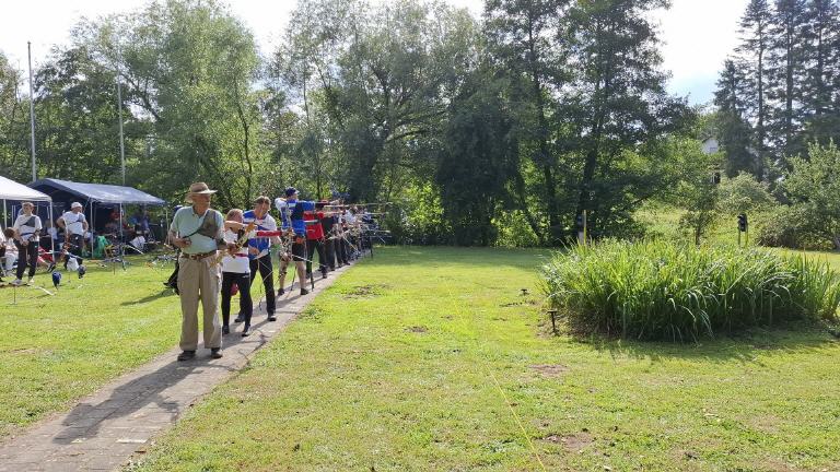 Anlässlich unseres 50-jährigen Bestehens in diesem Jahr hatten wir uns etwas Besonderes ausgedacht. Unter dem Motto "Rund um die 50" gab es viel Neues: andere Entfernungen oder andere Auflagengröße, neue Pfeilanzahl (10x 5 Pfeile je Durchgang), mehr Zeit pro Pfeil, mehr Klassen (unter anderen auch Schüler B und C). Viele Komponenten, die es auf die eine oder andere Art etwas leichter oder aber auch interessanter machten. Vielleicht war das Turnier deshalb auch bis auf sehr wenige Restplätze ausgebucht.